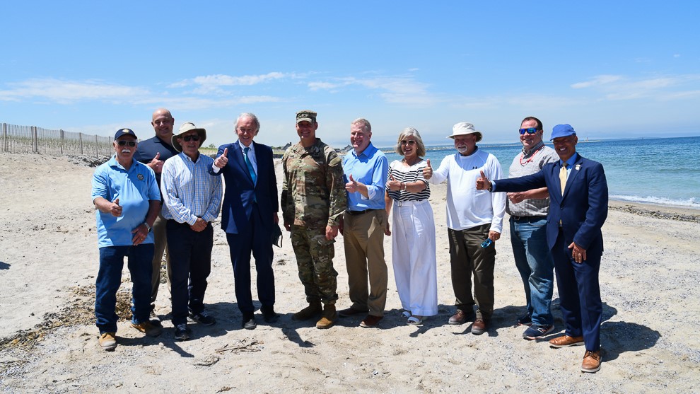 New England District Commander Col. Justin Pabis met with Senator Edward Markey, Sandwich’s Town Manager Bud Dunham, members of the Town Select Board, and homeowners last week to talk about the anticipated and necessary nourishment of Town Neck Beach in Sandwich, MA.