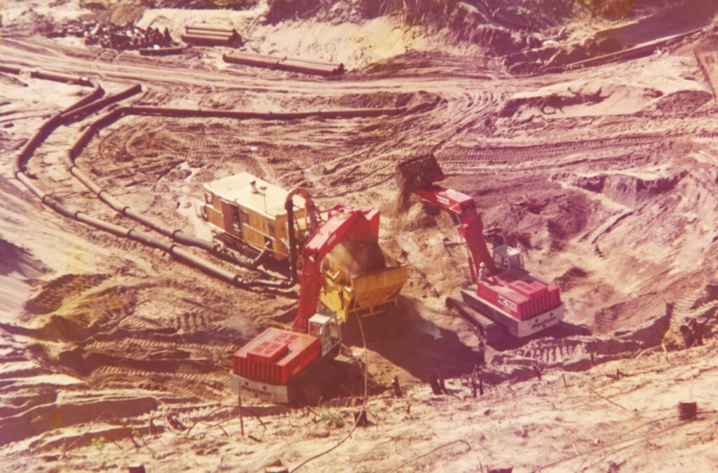 Enormous quantities of sand were relocated using these Soil Pumping Stations, where they formed the linking pin between dry mining and dredging.