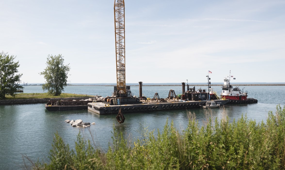 Armor stone is being installed at Wilkeson Pointe in the former commercial shipping slip, the USACE Buffalo District said.