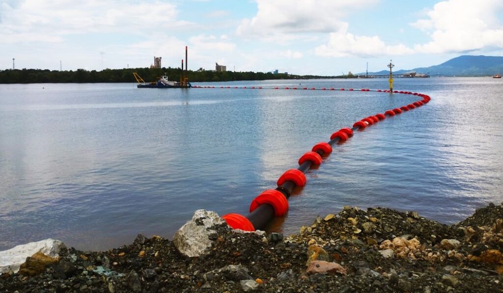 The newly designed dredge pump removes this sediment and pumps it to a spoil field some 500 metres away.