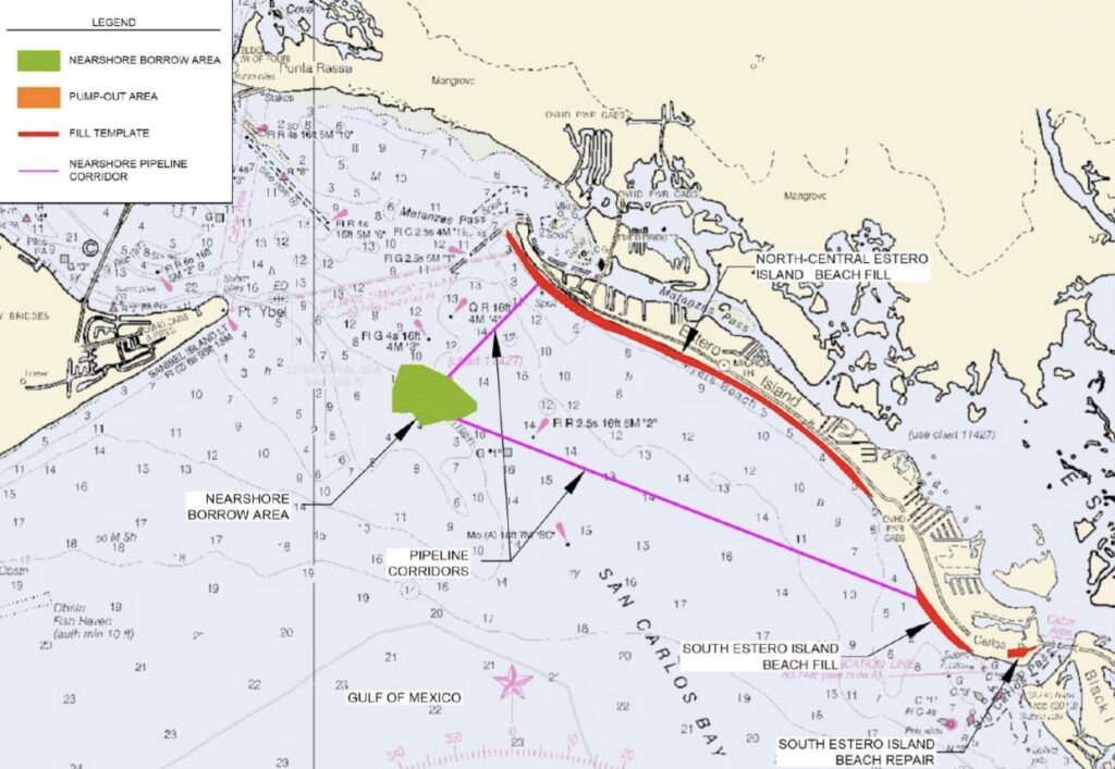 The project will dredge approximately 950,000 cubic yards of sand from a nearshore borrow area in the Gulf of Mexico onto Fort Myers Beach.