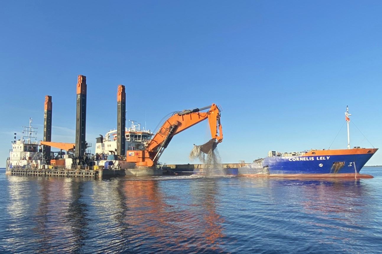 Van Oord’s backhoe dredger Simson and Boskalis’ backhoe dredger Magnor now started dredging the port and fairway to enable the subsequent work to be carried out as efficiently as possible.
