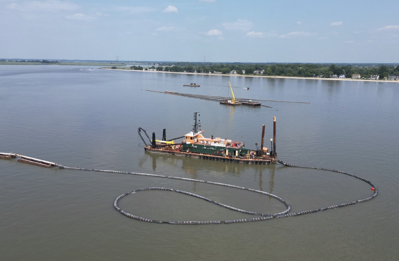 The sediment was pumped to enhance marsh within the Supawna Meadows National Wildlife Refuge, managed by the U.S. Fish & Wildlife Service.