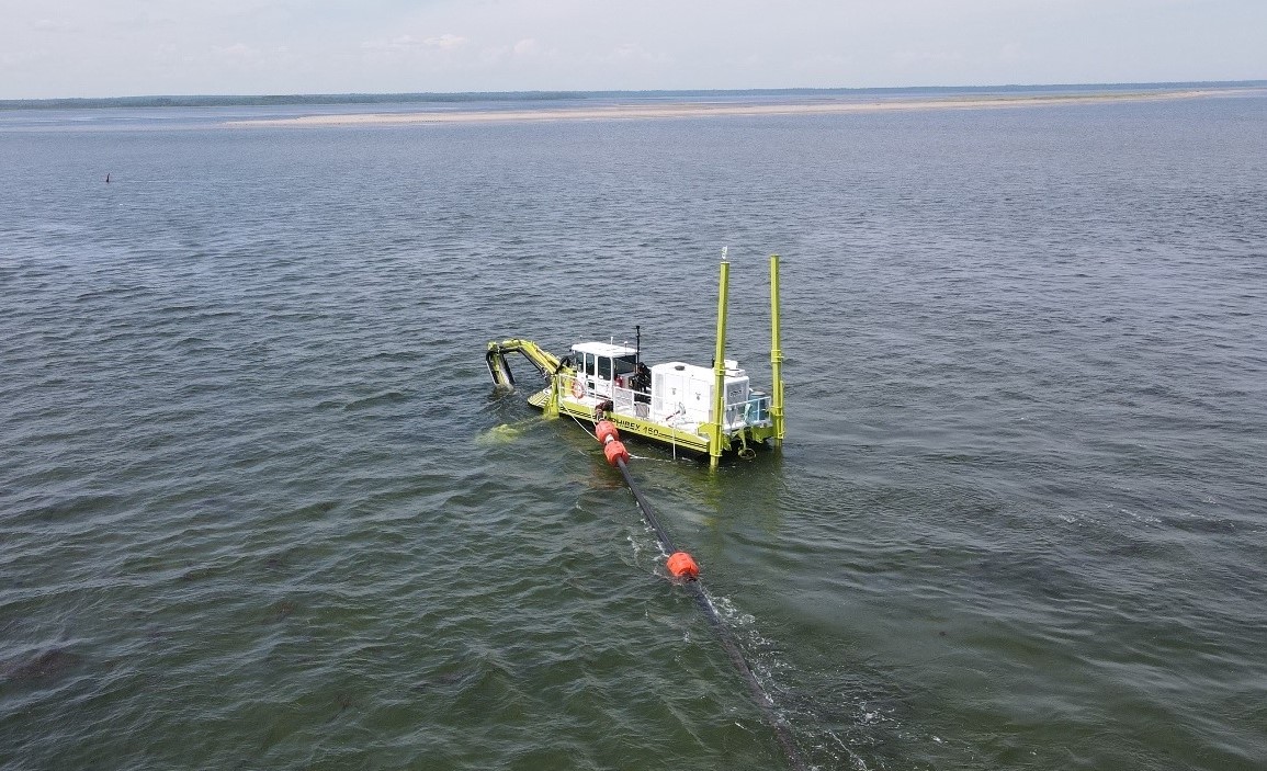 Dredging is crucial for preserving navigable waterways and safe access in these areas, with the main goal to remove accumulated sand shoaling due to the ongoing movement and repositioning material at the mouth.