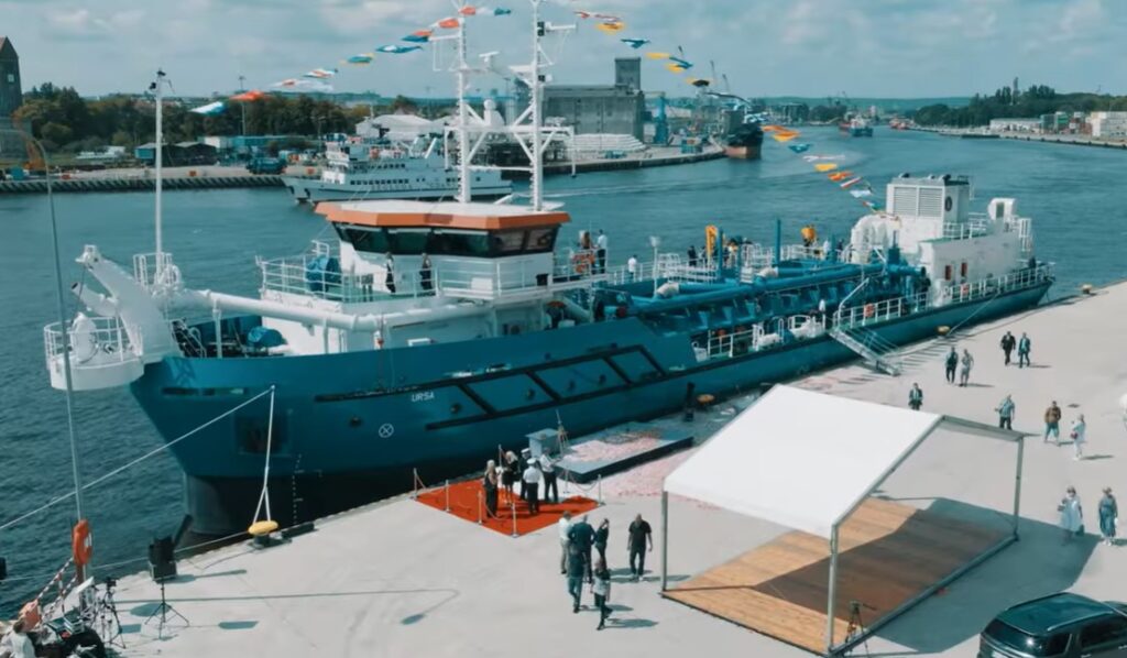 The trailing suction hopper dredger (TSHD) Ursa, built by the Finnish shipyard Tyovene Oy, was christened on Friday, August 9th.