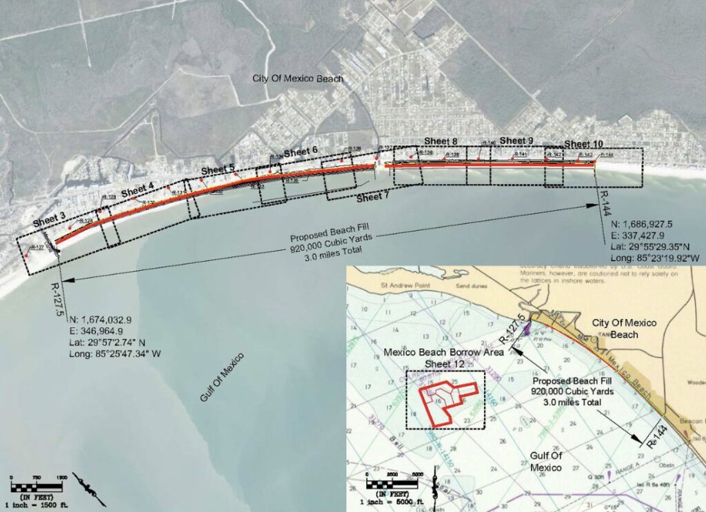 Nearly one million cubic yards of sand will be placed with this first full-scale beach restoration project for the Mexico Beach shoreline.