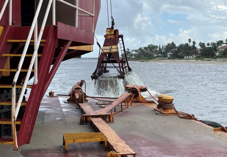 The St. Lucie Inlet maintenance dredging project continues to progress as dredging moved from the channel cuts to the Impoundment Basin on the northside of St. Lucie Inlet this past week, said USACE.