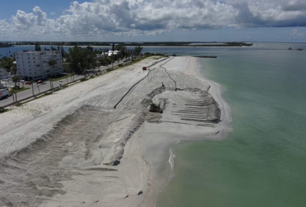 Pass-a-Grille beach nourishment has been mostly completed south of Paradise Grille and is now moving to the north end of the beach.