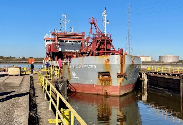 The arrival of the City of Chichester today means our Teesside team is currently working on two Tarmac vessels in the yard, with the City of London dry dock works nearing completion,” UK Docks Marine Services said.