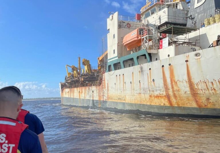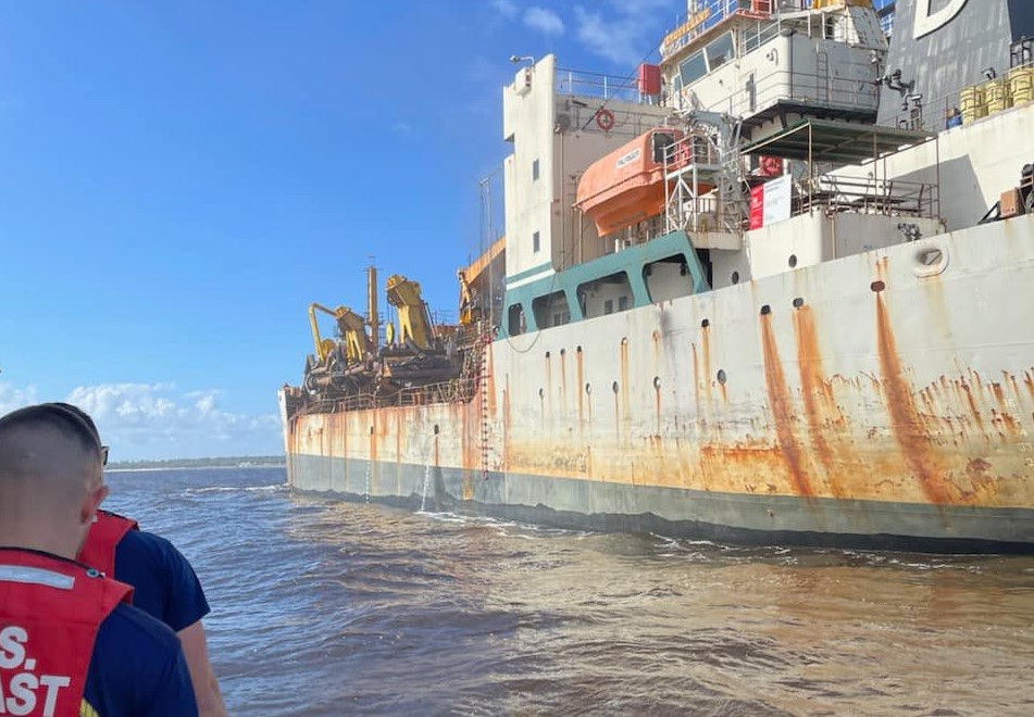 At about 15:30 hours on Saturday, Coast Guard Station Mayport received an alert that an engine room fire had occurred aboard the dredging vessel Stuyvesant.