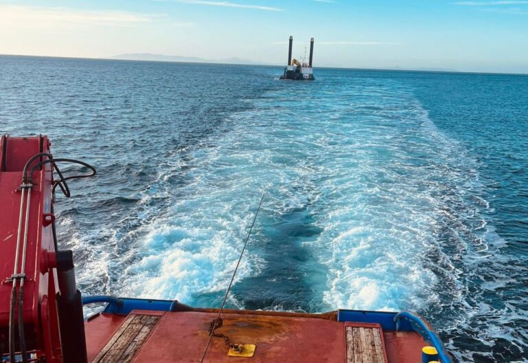 Following an extensive refit and successful annual Classification Survey by Bureau Veritas, Foyle and Marine’s backhoe dredger Dinopotes is now on its way to the Island of Colonsay.