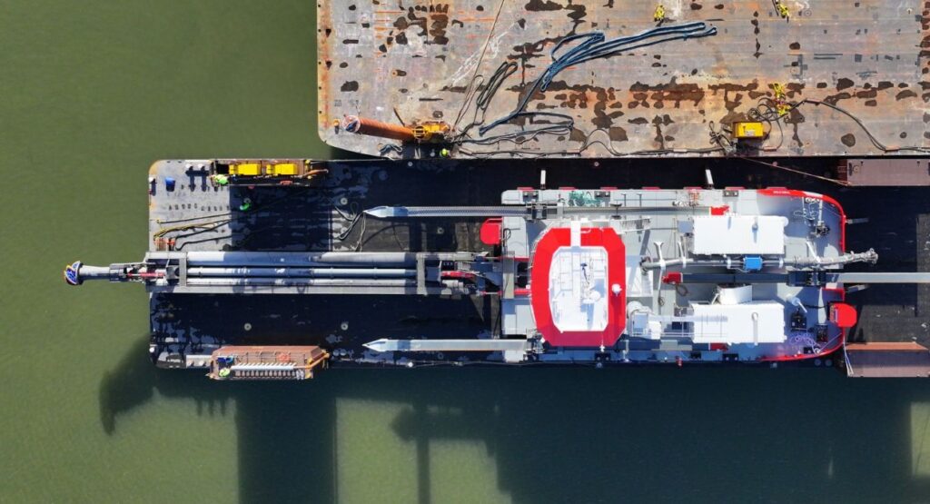 Neptune Marine said the the cutter suction swing arm dredger 500 TRYM was loaded on a semi-submersible barge yesterday and is now ready to leave the yard towards The Bristol Port Company.