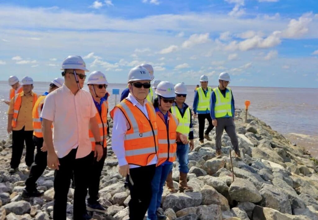 Sarawak government officials recently visited the work site near Miri Port to inspect dredging works in the Kuala Baram Delta.
