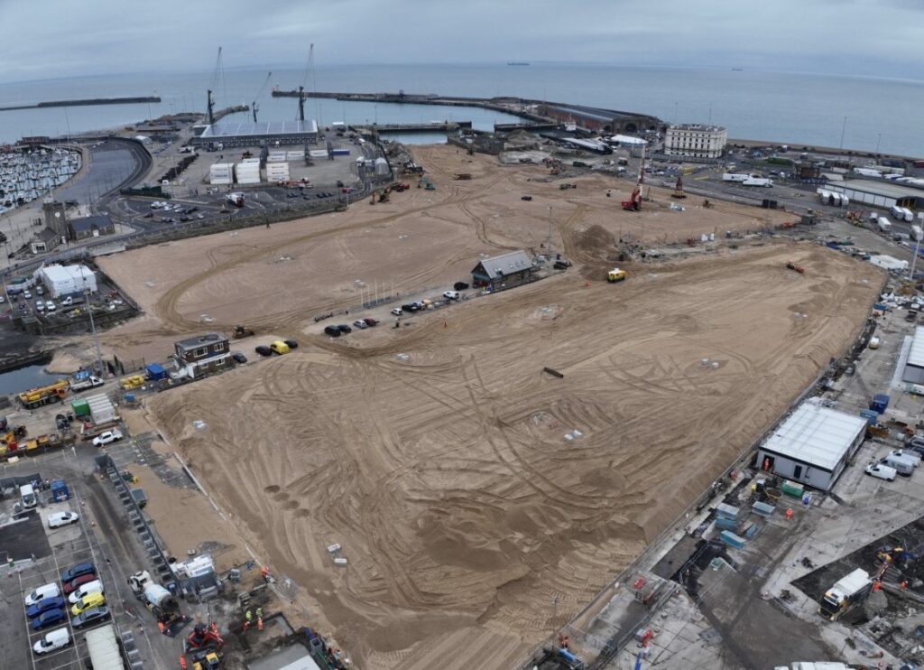 Around 7 hectares of new land is being reclaimed, with the old Granville Dock, Tidal Basin marinas, and the Wick Channel already being infilled by approximately 740,000m³ of marine dredged material by Boskalis.