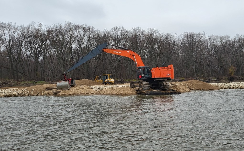 For the first time in Rock Island District history, the Operations Division Channel Maintenance program and the Upper Mississippi River Restoration (UMRR) program collaborated in an effort to beneficially use dredge material on the UMRR Steamboat Island Habitat Rehabilitation and Enhancement Project (HREP).