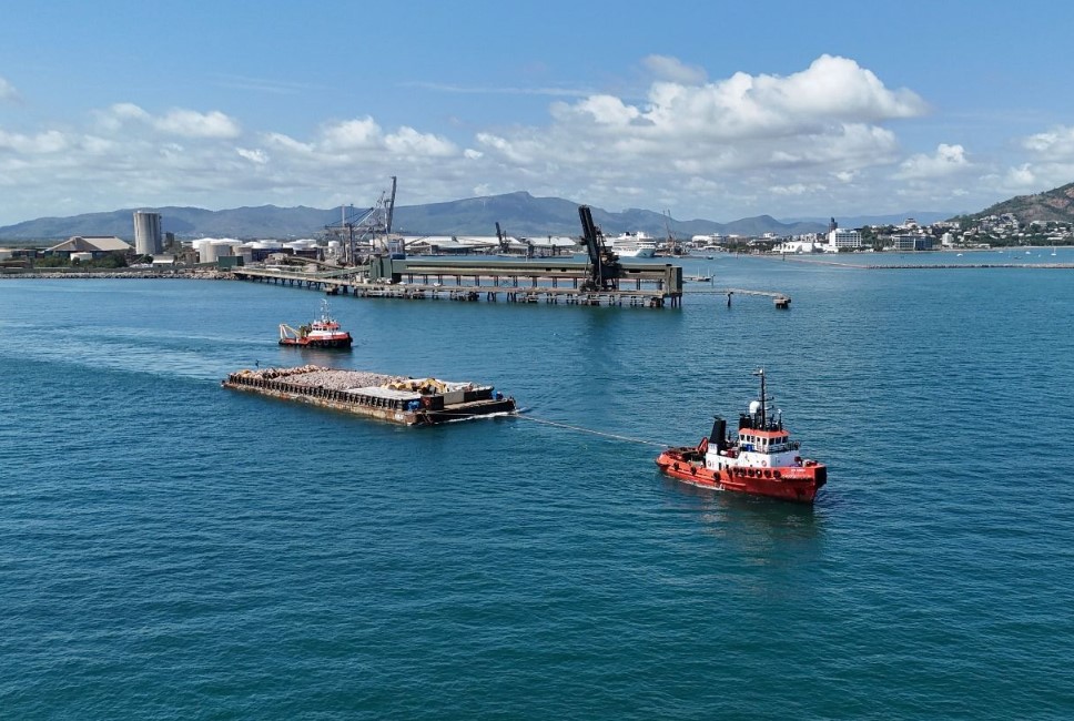 This is the second barge heading the way to support construction of the 1.8km seawall on the low-lying island of Ebeye throughout 2025.