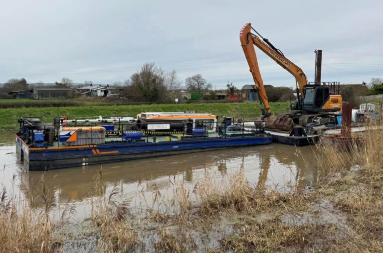 Following a successful trial last year, a Water Injection Dredging (WID) vessel is being used in combination with an excavator mounted on a floating platform in the river.