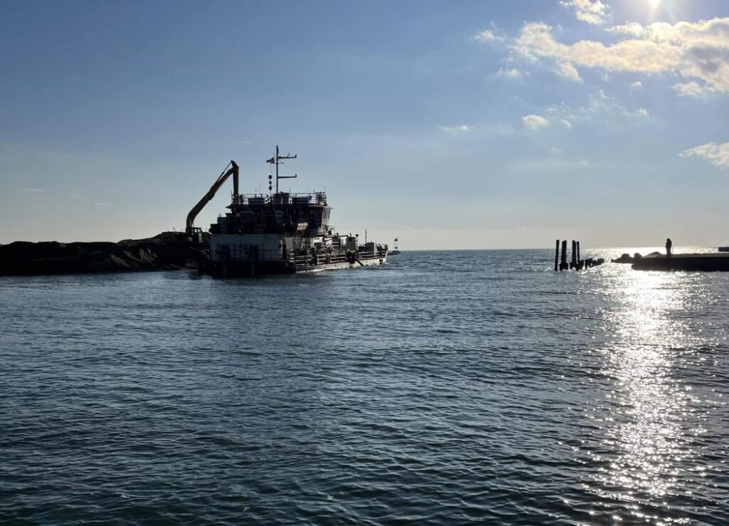 The effort is part of a four-week long mission to restore the channel to a nine foot depth and a 100-foot width at low tide.