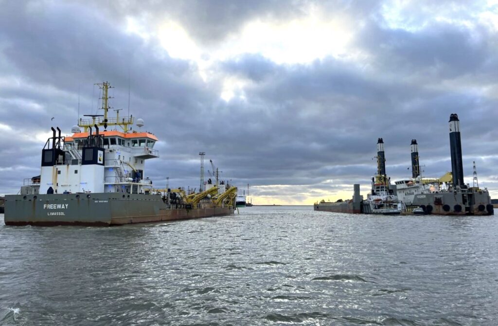 Currently, the four vessels and two barges are dredging the entrance to the port to make it more accessible.
