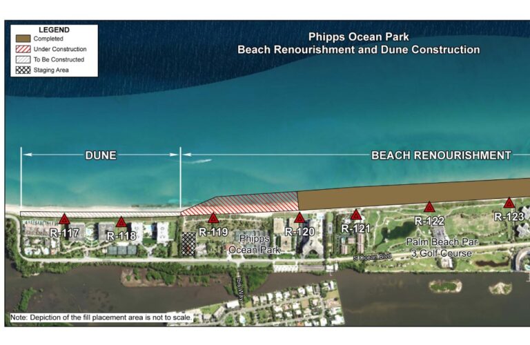 Periodic lane closures may occur along N. Ocean Blvd at Palmo Way as part of equipment deliveries, etc. Intermittent single-lane closures are expected to start on February 17, between Mockingbird Trail and Kenlyn Road,” the Town said.