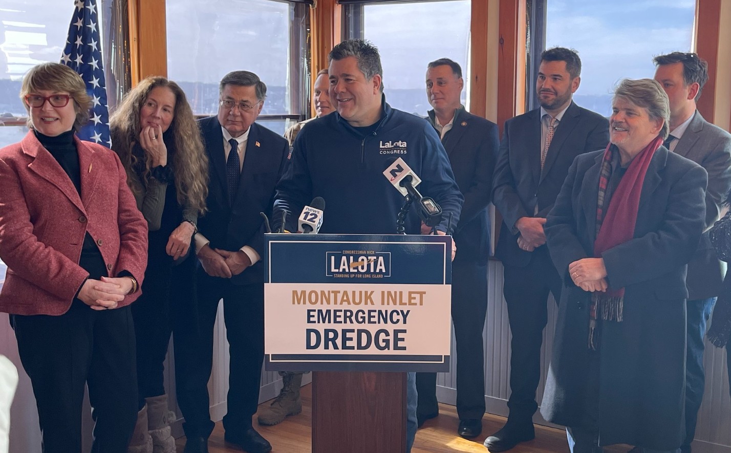 Congressman Nick LaLota yesterday hosted officials from all levels of government and leaders of the community to witness the U.S. Army Corps of Engineers conduct emergency dredging of the vital Lake Montauk Inlet.