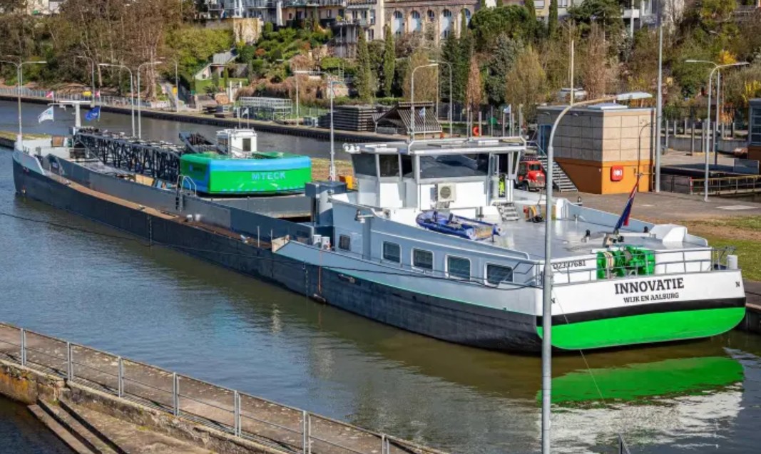 The dredger Innovatie was working near the Pfaffendorf Bridge in Koblenz when the crew discovered a 500 kg WWII bomb, which had inadvertently been hauled aboard.