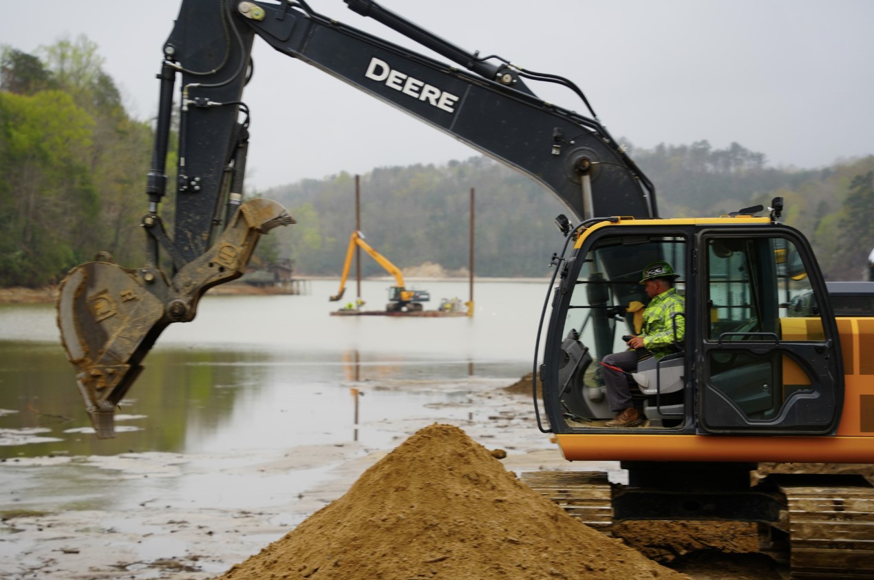 Contractors supporting the Army Corps are removing sediment from Lake Lure and the Broad River to restore navigability in support of Hurricane Helene recovery operations in Western North Carolina, April 2, 2025.