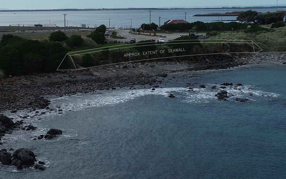 The coastal protection wall and landfill removal cost is around $3.5m and is being funded by DOC, ICC and Ministry for the Environment (MfE).