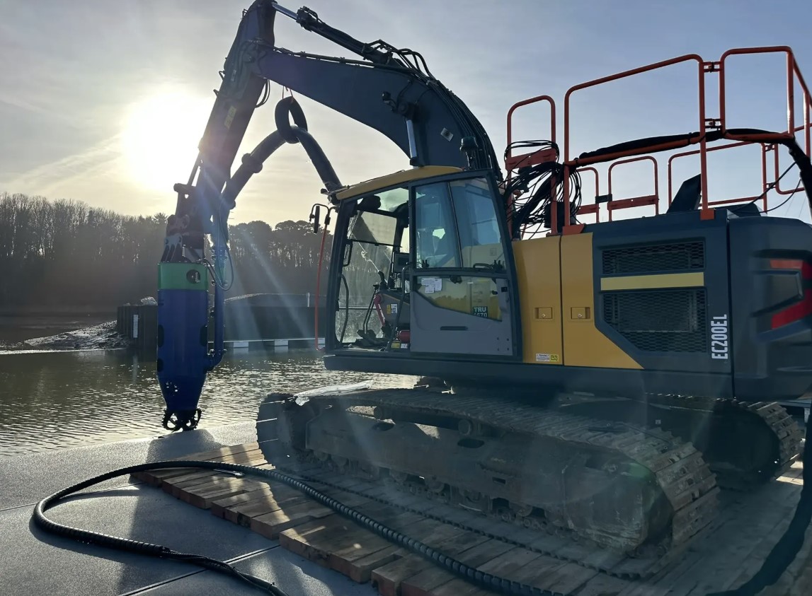 The set-up of the dredging equipment is quite straightforward: the E-DOP150 is connected to an excavator and powered by a separate gen set.