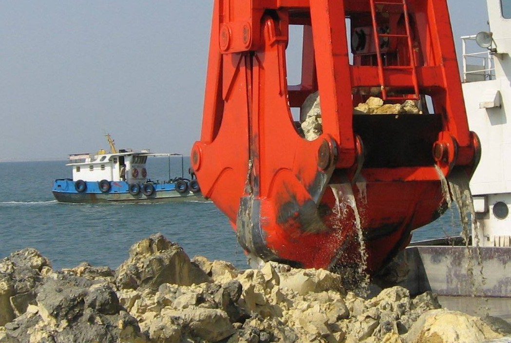 Also, dredging will be carried out to the specified depth within the working area. The clamshell grab dredger is equipped with positioning system and secured in place by 4- point anchor moorings.