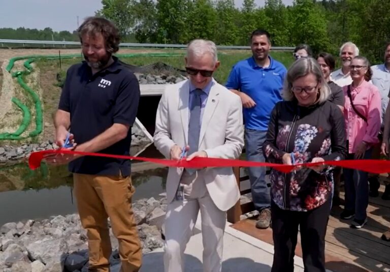 DNR Commissioner Sarah Strommen, Duluth Mayor Roger Reinert and other members of the community gathered yesterday in celebrating the Perch Lake habitat restoration project along Highway 23 near Gary New Duluth.