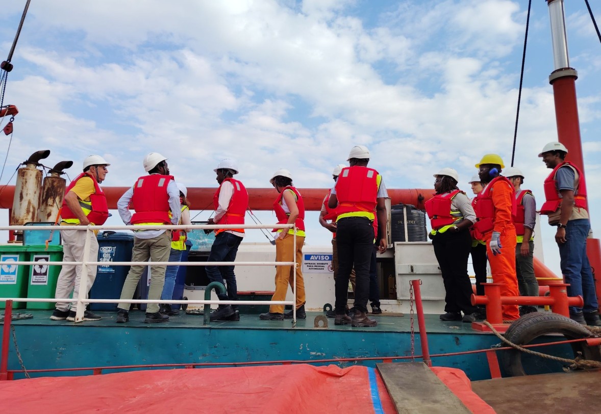 During the visit, the delegation observed the operations of the HID-CSD5522 cutter suction dredger, manufactured by Shandong Haohai Dredging Equipment Co., Ltd (HID).