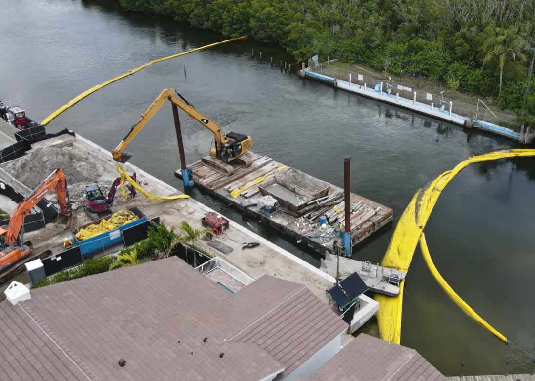 Dredging equipment and turbidity barriers at the Chiquita Lock were removed yesterday, June 17. This marks the early completion of the project and a major advancement in improving waterway access and environmental quality.