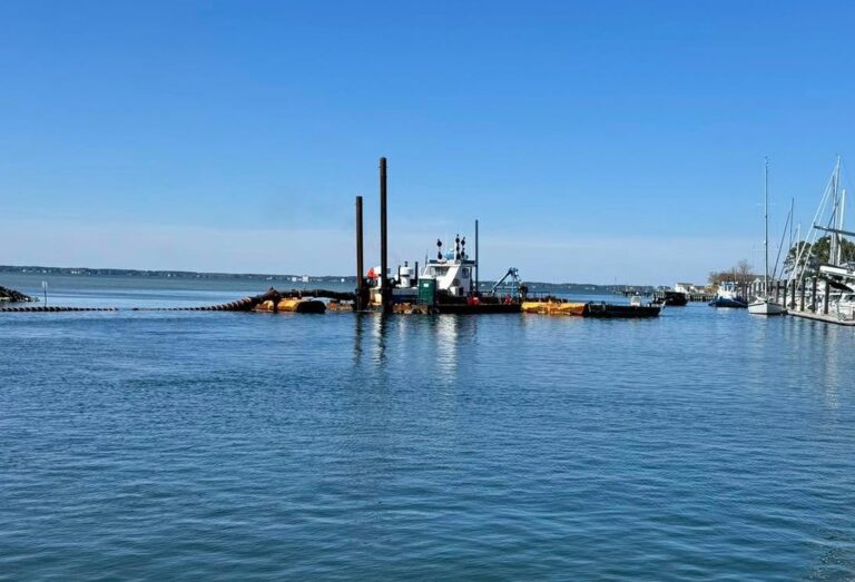 Dredging work is now complete on Broad Creek in Middlesex County, restoring the channel to a controlling depth of 8 feet and ensuring safe, consistent navigation for both visiting and year-round boaters.