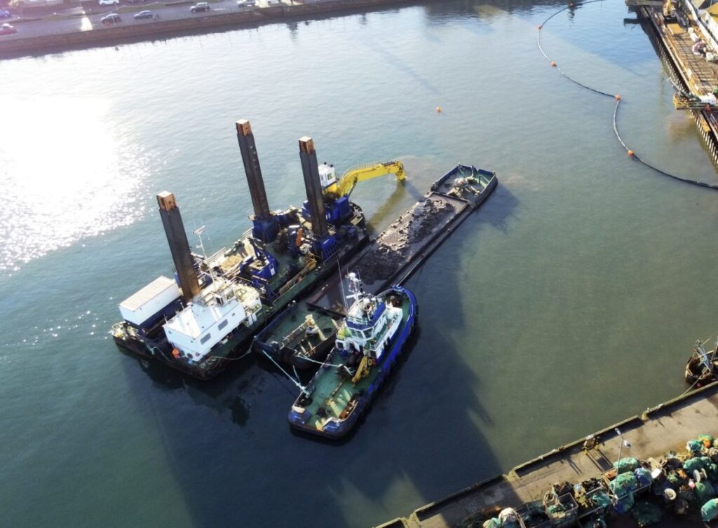 Using their dredger Dinopotes, along with tug Katie Lou, the company dredged around 30,000m³ of material from the harbor basin.