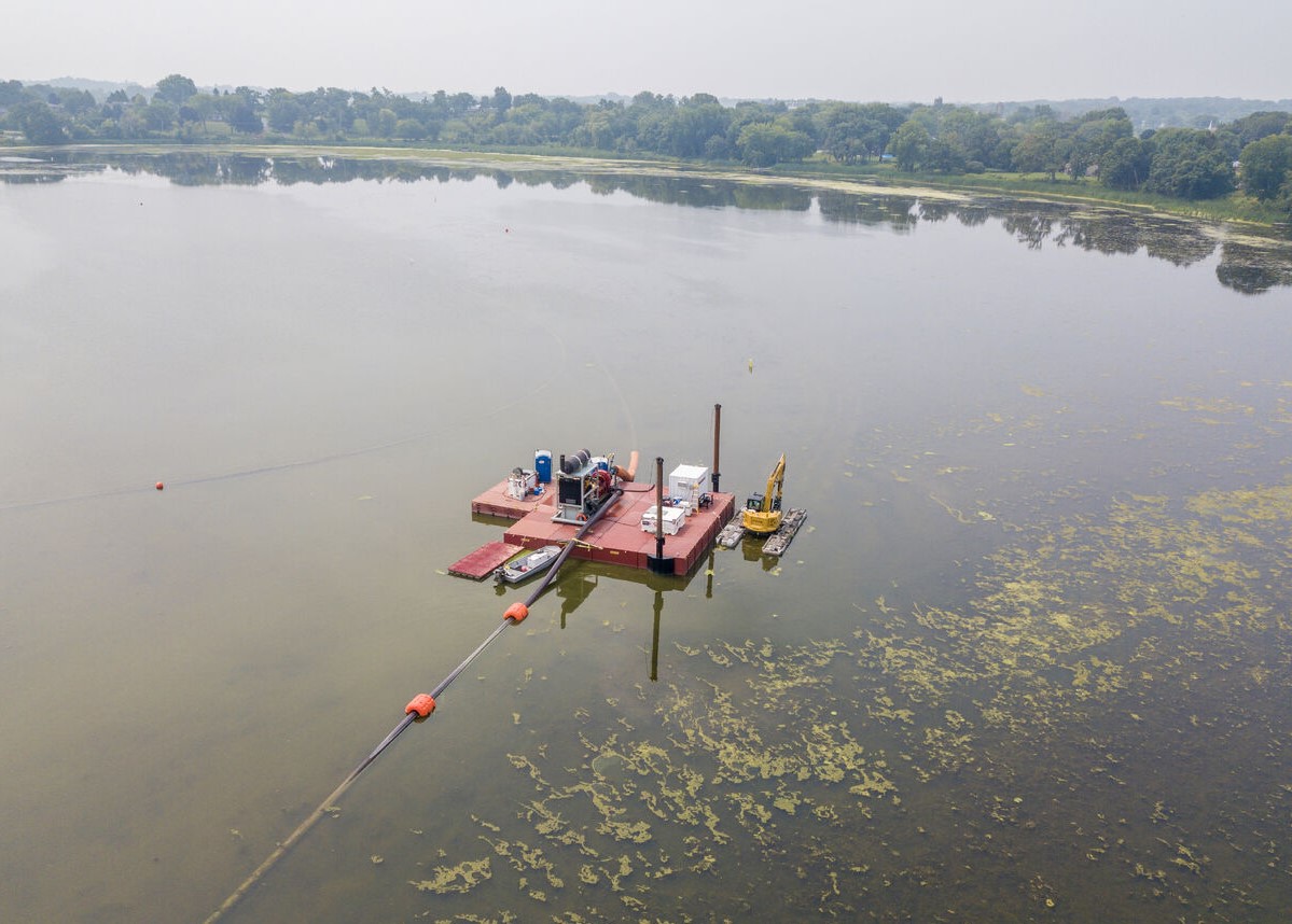 Michels Construction, Inc. used sophisticated dredging equipment, including a swinging ladder cutterhead suction dredge and booster pump, to remove years of accumulated sediment from a 3.1-mile stretch of the Yahara River in Southern Wisconsin.