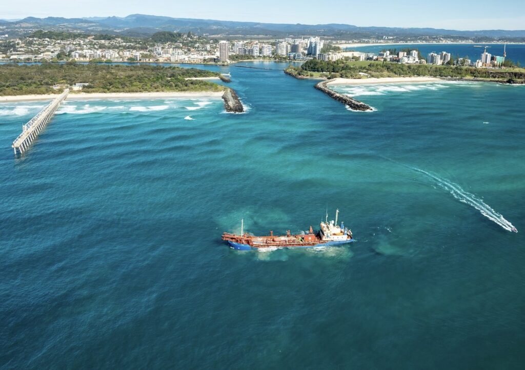 Despite the jetty that collects most of the coastal sand drift, some sand still moves past the jetty and into the Tweed River entrance. This sand builds up over time, requiring periodic dredging.