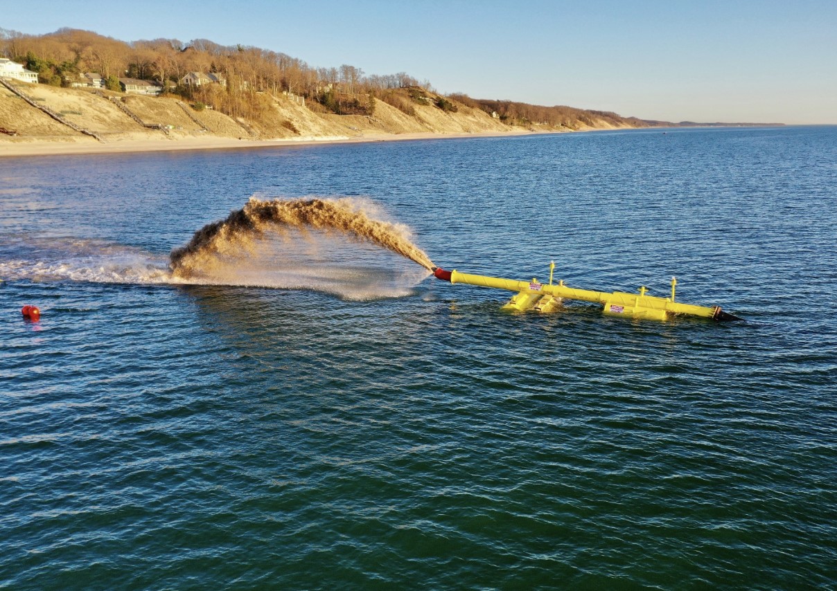 The material will be discharged in water depths ranging from 4 to 12 feet, allowing natural wave action to redistribute it along the shoreline over time.