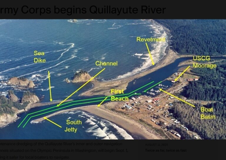 Maintenance dredging of the Quillayute River’s inner and outer navigation channels, situated on the Olympic Peninsula in Washington, will begin September 1, USACE said.