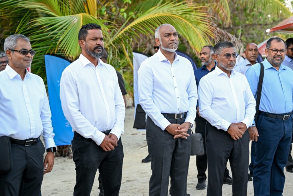 The Maldives’ President, Dr Mohamed Muizzu, attended the commencement ceremony of the airport land reclamation project in AA. Mathiveri this morning.