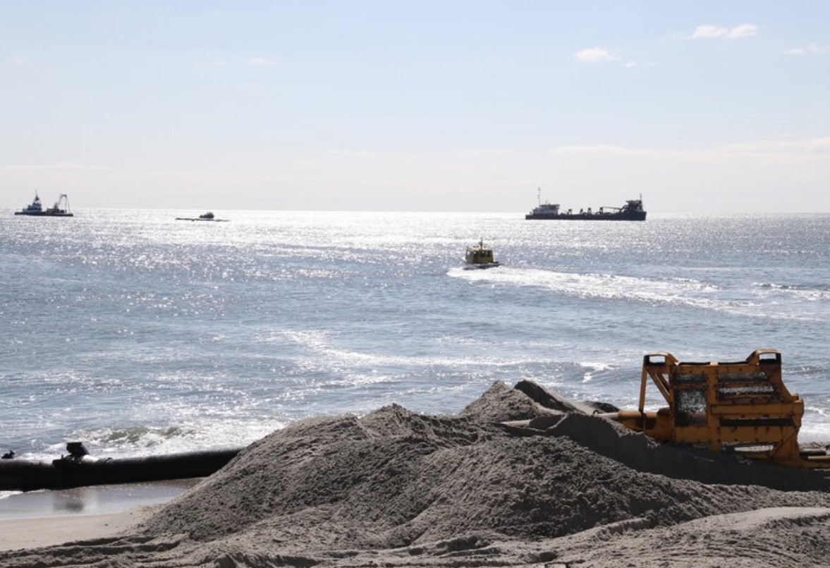 The U.S. Army Corps of Engineers has begun beach replenishment operations in Mantoloking, New Jersey.