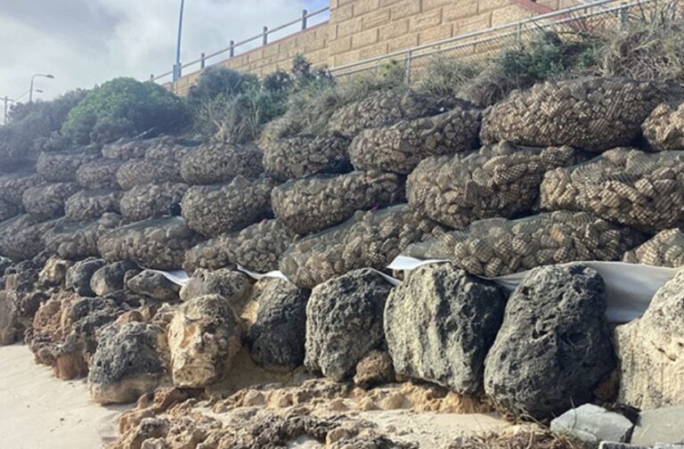 Retaining at Hamersley Beach was improved with the innovative use of kyowa rock-bags.