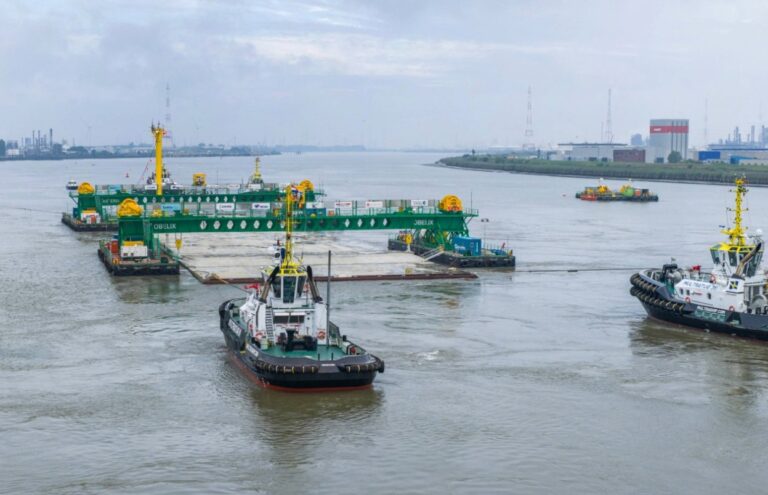 According to Jan De Nul, the operation started in July 2025, and now four massive elements, each weighing 60,000 tons, rest on the bottom of the river.