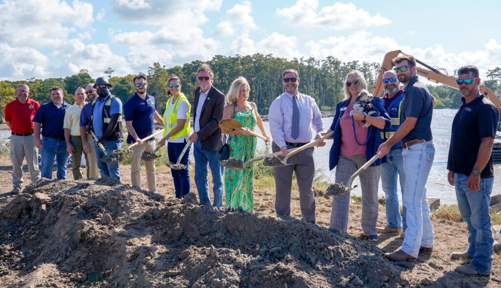 This groundbreaking launches the construction of a multi-faceted restoration project, supported by $1 million from the Parish Match Program, that includes marsh creation, a rock berm, and a weir along the Pontchartrain lakefront.
