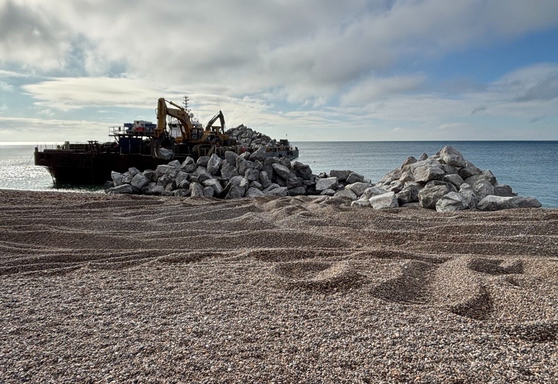 • Delivering approximately 6,500 tons of rock by sea (rock armor) to reinforce the base of the cliffs,