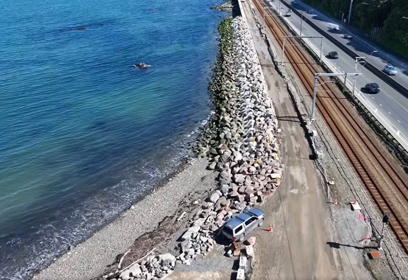 We’ve finished installing all the interlocking concrete blocks (Xblocks) along the sea shore, and we’ve started works to complete the walking and cycling path and rest areas. Work on the over rail bridge is now also underway,” NZ Transport Agency Waka Kotahi said.