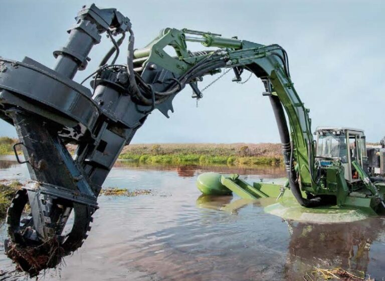 According to an official Government’s statement, this piece of dredging equipment is capable of operating both on land and in water.