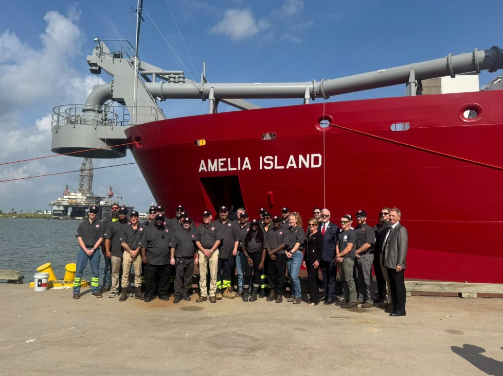 Great Lakes Dredge & Dock (GLDD) held a naming and christening ceremony yesterday at Pier 21 in Galveston, Texas, for the company’s 2nd newest trailing suction hopper dredger (TSHD) Amelia Island.
