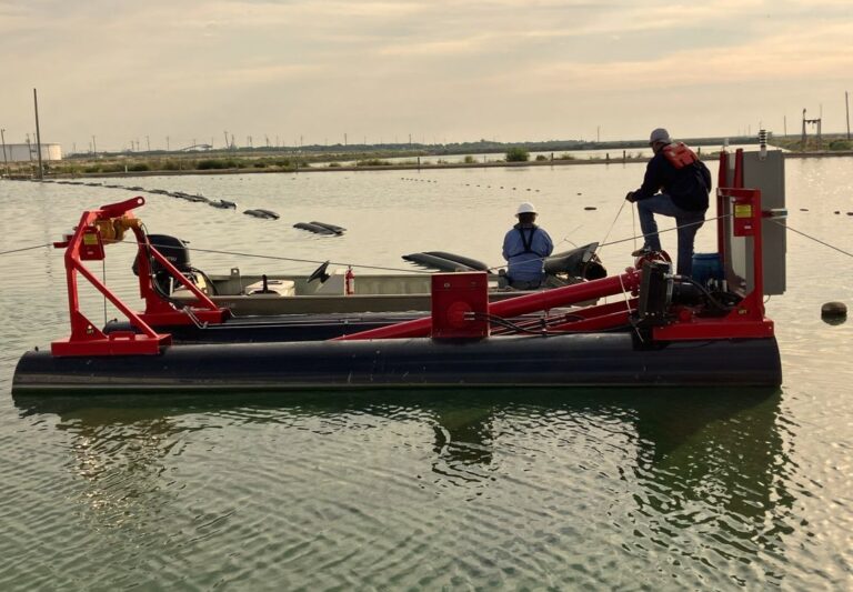 Ellicott said that this method provides greater efficiency and control than hanging pump dredges, which often create uneven holes in the sludge bed, complicate tracking, and risk damaging plastic or concrete lagoon liners.