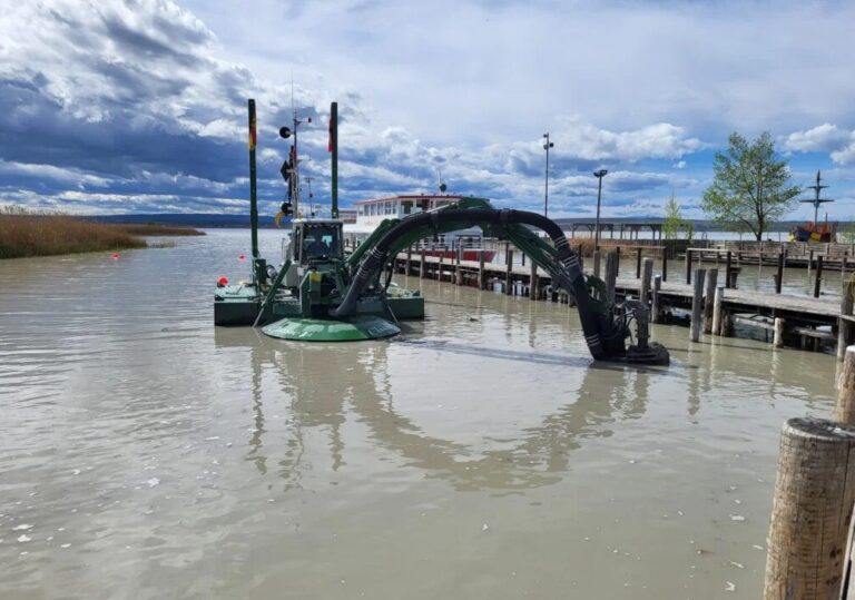 Seemanagement Burgenland is carrying out maintenance at more than 30 sites around the lake – dredging harbors, entrances, reed and boat channels, and improving water circulation.